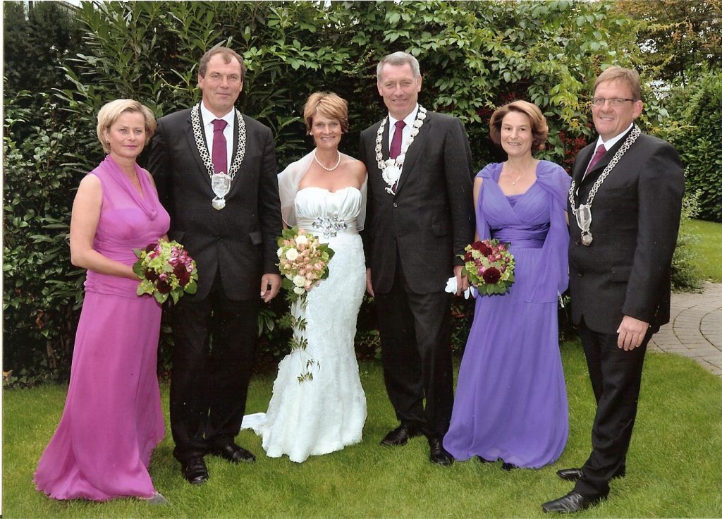 Theo Andree mit seinen Brudermeistern Herbert Kollenbroich und Josef Andree (Jäger Corp) mit ihren Damen